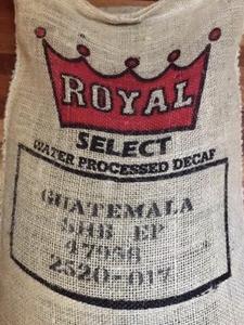 Guatemala SHB Royal Select Water Decaf is sourced from lots that the Royal team has selected based on cupping evaluations. After selection, the green coffee is pre-soaked in water to expand the beans for caffeine extraction. The beans are then introduced to a solution concentrated with coffee solubles that extract the caffeine without extracting the coffee's particular flavor.